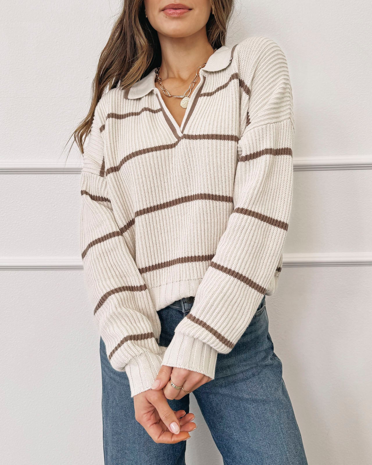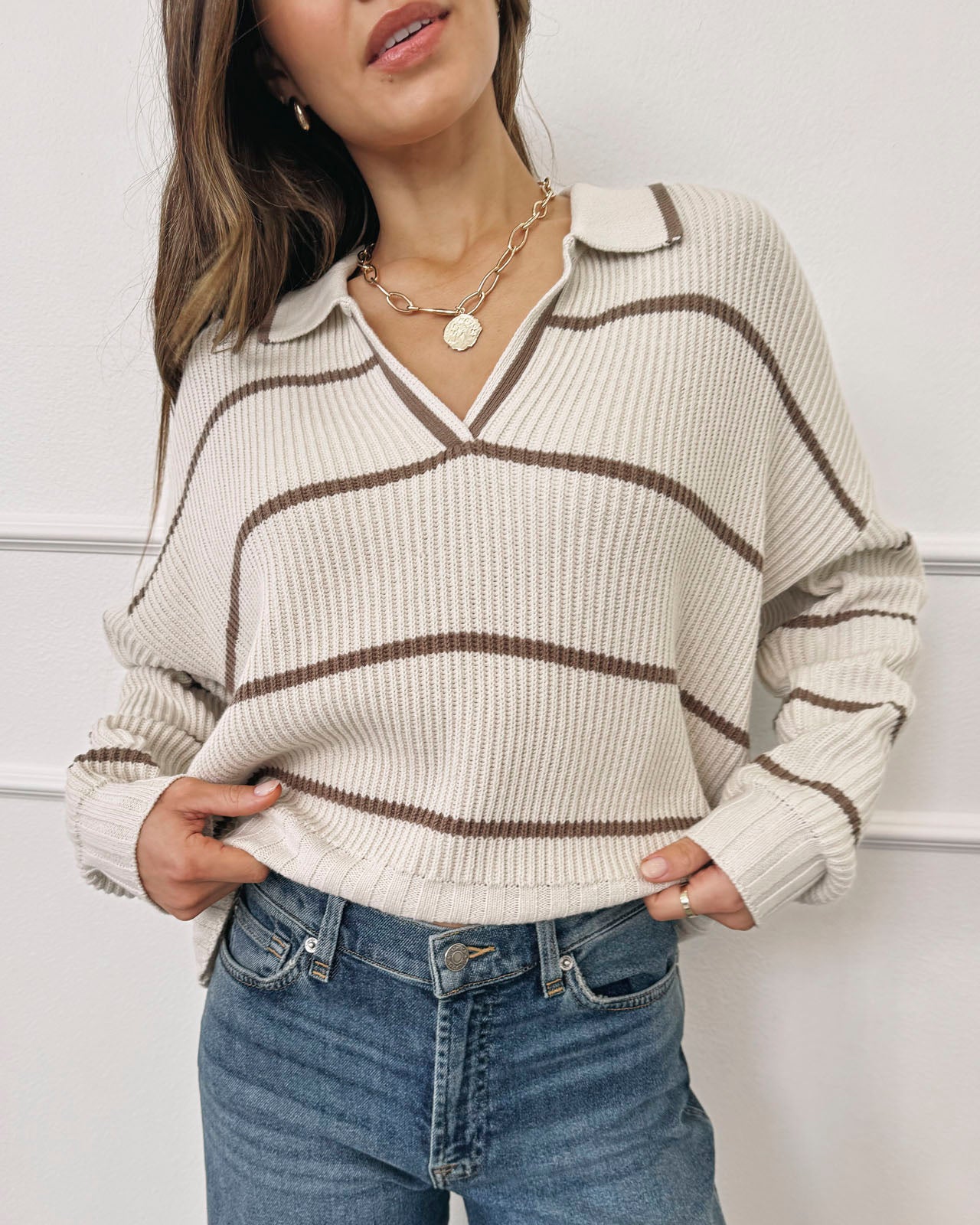 Splendid x @Cellajaneblog Stripe Polo Sweater